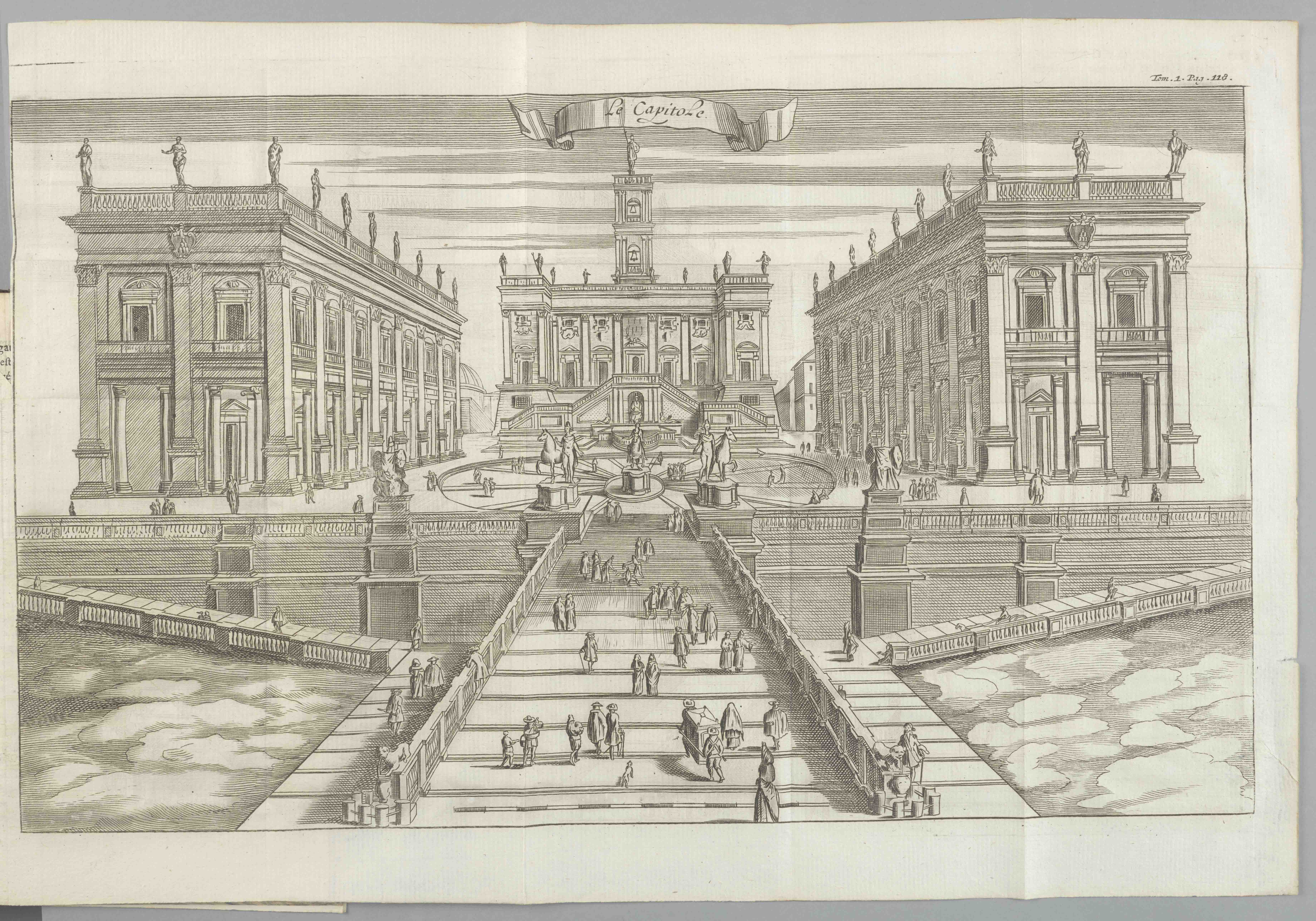 Description Historique De L’Italie, Haga 1776. Renesansowa zabudowa Kapitolu w Rzymie. Miedzioryt.