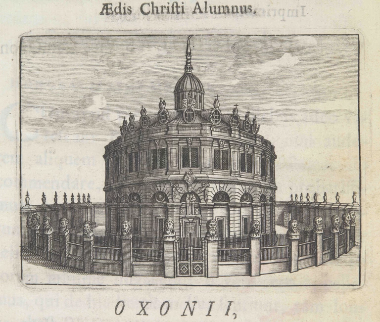 Maimonides, De Iure Pauperis et Peregrini, Oksford 1679. Teatr Sheldonian w Oksfordzie. Miedzioryt.