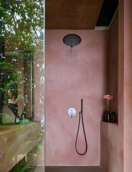 Materiały użyte w projekcie podkreślają jego związek z naturą: ubita ziemia, beton, stal, szkło i cedrowe drewno tworzą spójną, surową, a zarazem ciepłą kompozycję. Filozofia wabi-sabi – akceptująca przemijanie i piękno niedoskonałości – przenika każdy detal domu.