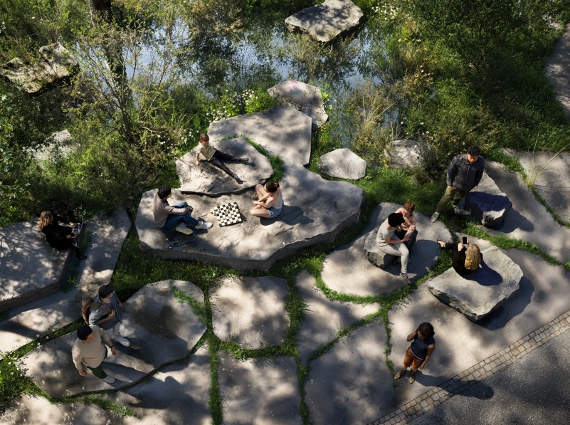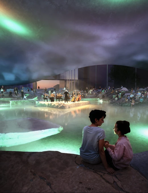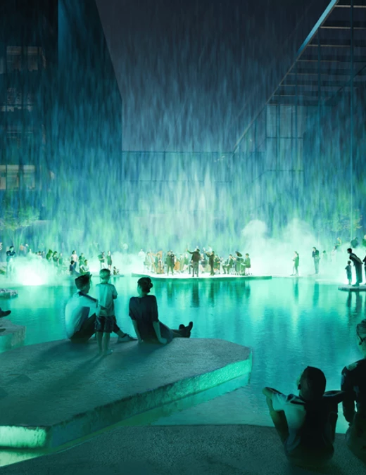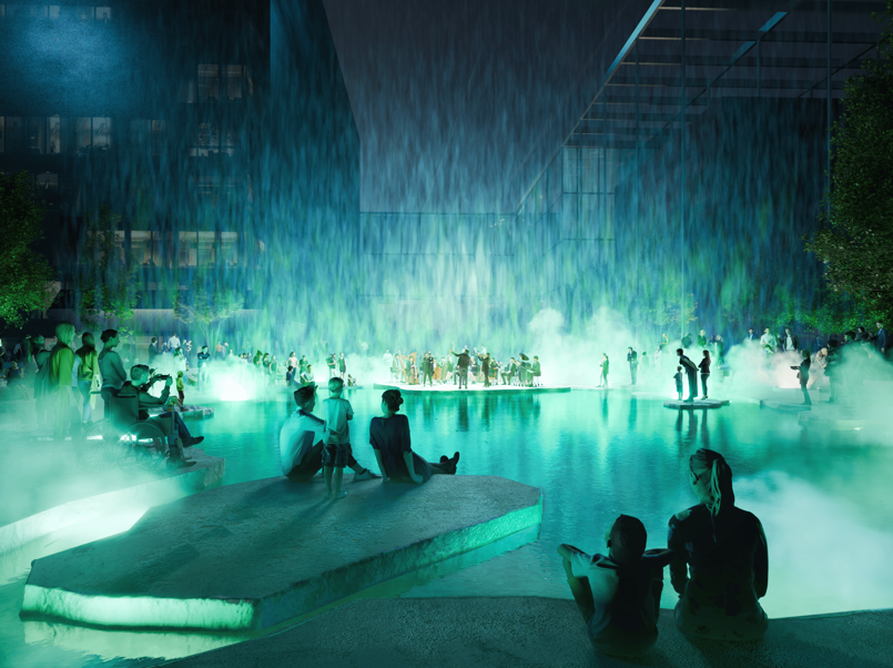 Teren przy DR Concert Hall zostanie przekształcony w przestrzeń przypominającą tkankę z niewielkimi wyspami, które opływać będą nie tylko woda, lecz także gra świetlna.