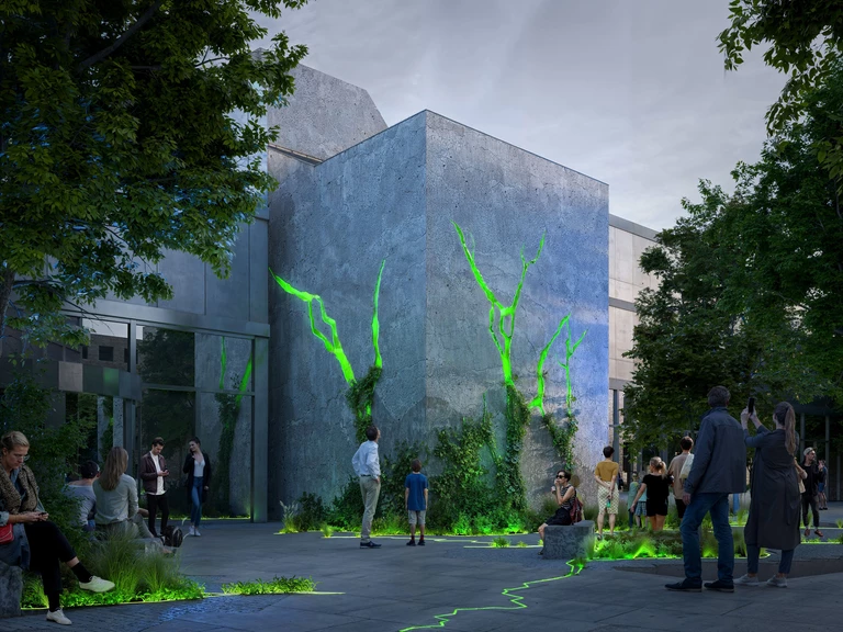 Oprócz funkcji estetycznej i ekologicznej, świetliste szczeliny pełnić będą również rolę orientacyjną, ułatwiając intuicyjne poruszanie się po zaprojektowanej przestrzeni. Plac przy Bella Arenie rozbłyśnie zielenią, która wniknie także w fasadę budynku. Połączenie naturalnego kamienia, betonu i nasadzeń wprowadzi sezonową zmienność, a gęsta roślinność i kwitnące gatunki rozleją się na ścieżki.