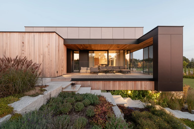 „Głównym założeniem projektowym było stworzenie domu, który oprze się o istniejącą skarpę, by unieść się i spojrzeć w dal” - wyjaśnia Borys Wrzeszcz, współzałożyciel pracowni Wrzeszcz Architekci, który wraz z Mariuszem Wrzeszczem i Jarosławem Bajerem stworzył projekt domu. Na wykorzystaniu skarpy zależało też inwestorom – rodzinie z dzieckiem. Chcieli, aby ich nowy dom wyróżniał się spośród otaczającej zabudowy i miał swój charakterystyczny, wyjątkowy wygląd.