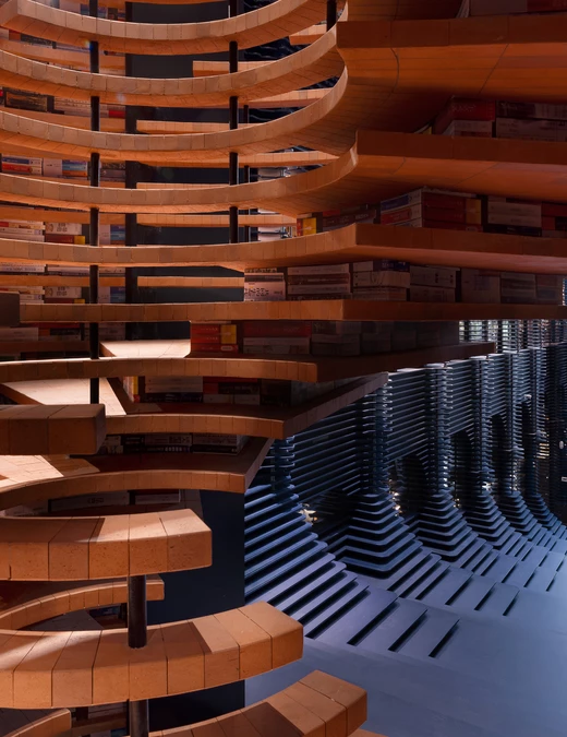Innowacja polega również na skali rzemiosła. W całym projekcie zużyto około 400.000 cegieł, a każda forma cegły została zaprojektowana specjalnie na potrzeby tej księgarni. Aby uzyskać płynne, zakrzywione przejścia na regałach, zaprojektowano cegły o różnych rozmiarach i trapezoidalnych kształtach, z których każda wymagała osobnej formy i była ręcznie wycinana przez rzemieślników.