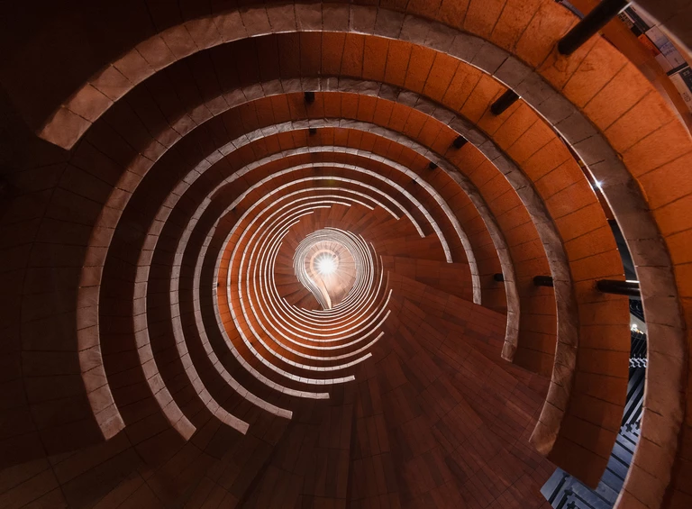 Wnętrze księgarni to podróż sama w sobie. Już przy wejściu goście muszą pokonać warstwy schodów, które wznoszą się, rozszerzają i pogłębiają. Ten zabieg metaforycznie przedstawia nieustanne dążenie ludzkości do prawdy. Schody płynnie przechodzą w regały na książki, a ich progresywna forma nawiązuje do charakteru portowego miasta - statków wypływających w morze, niosących różnorodne myśli.