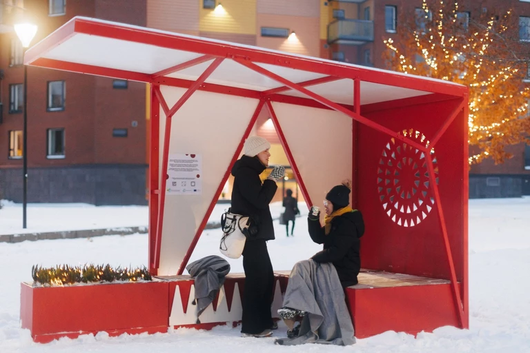 Tym razem swoje pomysły wcielili w życie w fińskim miasteczku Kerava, nieopodal Helsinek. Wspólnie z firmą Parkly, specjalizującą się w produkcji mebli miejskich, stworzyli „zimoodporny” zestaw siedzisk, wiat i stojaków rowerowych.