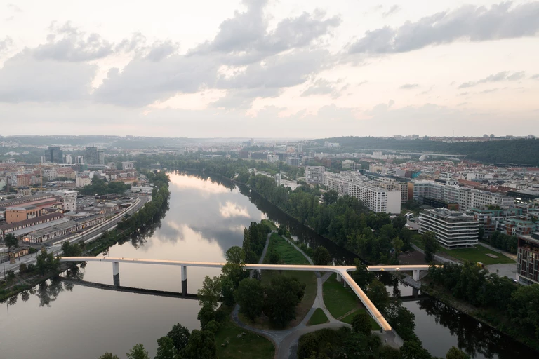 Skromna i minimalistyczna kładka pieszo-rowerowa połączyła dwa brzegi czeskiej stolicy. Wygląda niczym wyrzeźbiona w białym, lśniącym marmurze.