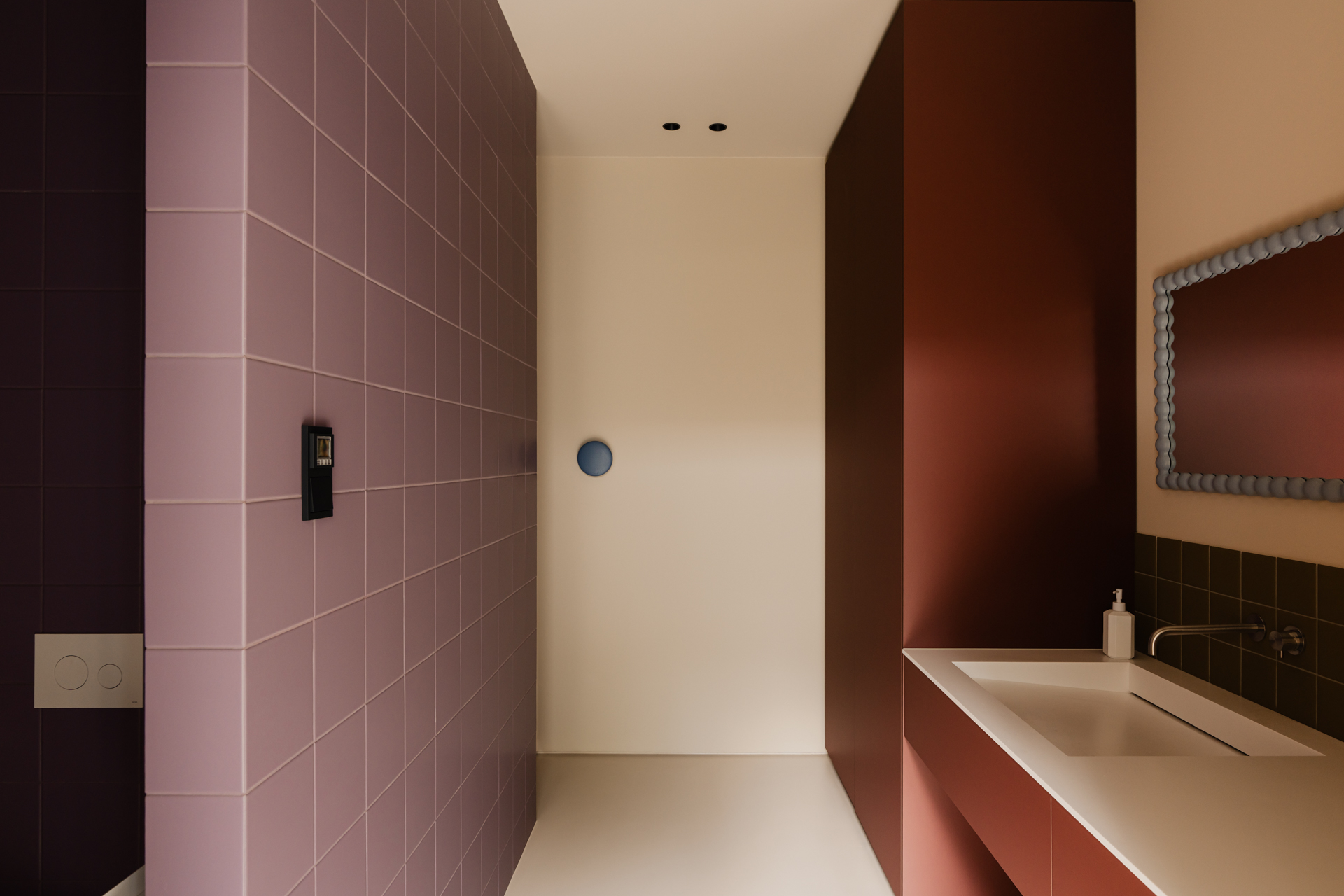 Projektantki pracę rozpoczęły od stworzenia palety barw. Z premedytacją zdecydowały się na kontrastowe odcienie zieleni i różu, dopełniając je granatem. Całość łączy geometria, która pojawia się na ścianach ale także w elementach wyposażenia. Gdański salon piękności „Tam, gdzie lubię" zachwyca!