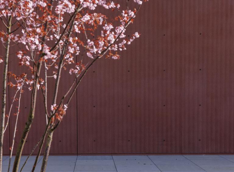 Rozmiar pojedynczego modułu ornamentu architekci WXCA zaprojektowali w oparciu o skalę człowieka, a konkretnie ludzkiej ręki, co przekłada się na stopniowanie doświadczenia estetycznego – wraz ze zbliżaniem się do monumentalnej, zdyscyplinowanej bryły na pierwszy plan wychodzi detal fasady.