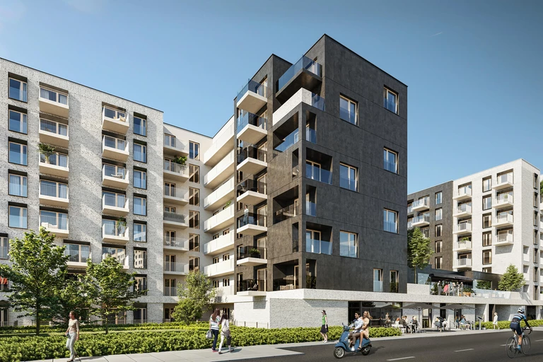 Nowa realizacja to siedmiopiętrowy budynek z dwukondygnacyjnym garażem podziemnym. W ramach inwestycji powstały 243 mieszkania o różnych metrażach oraz 301 miejsc parkingowych. Na elewacjach znalazł się zestaw trzech materiałów: ceramicznej płytki oraz jasnego i ciemnego tynku z dodatkiem miki.