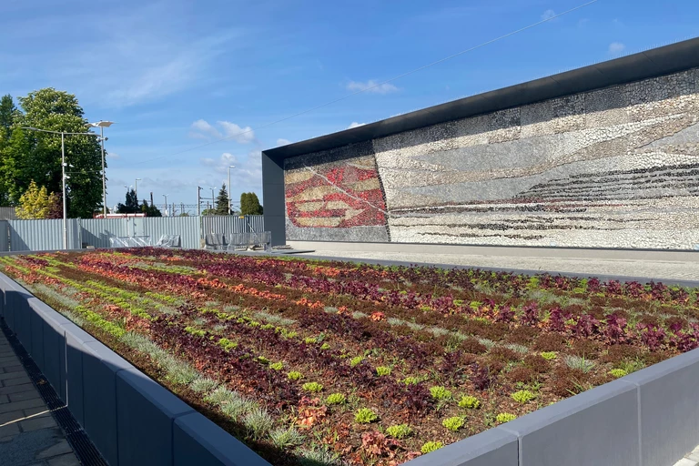 Kolorowa, zielona, ekologiczna i żywa – taka jest kwietna mozaika, którą zasadzono przed nowym dworcem w Oświęcimiu. Ten unikatowy „obraz” został stworzony aż z 2500 roślin.