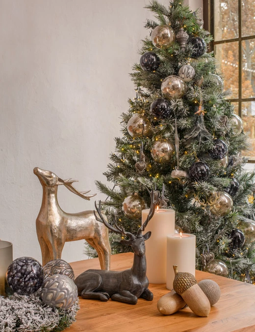 Mieniące się ozdoby zbudują świąteczny klimat w zarówno we wnętrzu klasycznym, jak i skandynawskim czy loftowym. W otoczeniu bardziej tradycyjnym najlepiej sprawdzą się nowoczesne formy, z kolei te czerpiące z historii przełamią i ożywią stylistykę współczesną. Co więcej, prócz bombek, zawieszek i dekoracji przeznaczonych na stół, komodę czy konsolę, w kolekcji Melancholia znalazły się również ośnieżone choinki, wieńce i girlandy. Uwagę bez wątpienia zwrócą też nowoczesne figury jeleni w różnych układach ciała. A o przytulne ciepło bez względu na kaprysy pogody zadbają tekstylia – z kocami w norweskie wzory na czele.
