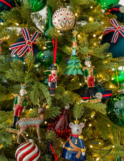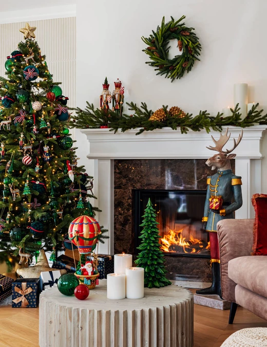 W tej tak magicznej świątecznej krainie nie mogło zabraknąć wyjątkowych przyjaciół – obłaskawionych, oswojonych zwierząt. Stąd m.in. zawieszki w formie fantazyjnie malowanych jelonków, sów, a nawet żab. Stąd też strażnicy ładu i porządku w postaci umundurowanych łosi i jeleni, mierzący aż 130 centymetrów. Te dostojne figury zajmą miejsce na podłodze, podczas gdy na półce, komodzie, konsoli lub obudowie kominka pojawią się stojący na baczność 40-centymetrowi wojacy – z prezentem, z lizakiem lub z choinką zamiast oręża. Pod sufit – prócz zielonych kul – wznieść się mogą imponujące zawieszki w formie balonów lotniczych o baśniowej formie i przebogatej dekoracji. Co znajduje się w ich gondolach? Oczywiście upominki!