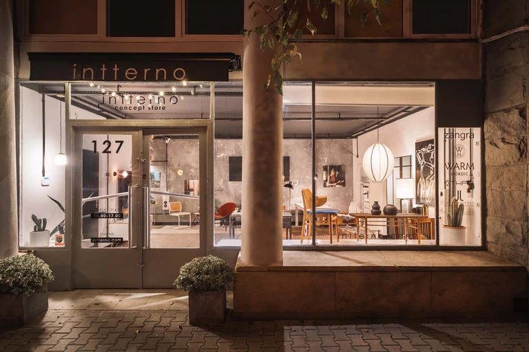 Nadrzędnym celem Intterno concept store jest pomoc w oswajaniu wnętrz. Znajdziemy tu produkty pochodzące z niewielkich manufaktur z Europy, które wzorowane są na modelach sprzed lat. Większość z nich wykonana jest ze szlachetnych materiałów przez rzemieślników i artystów.