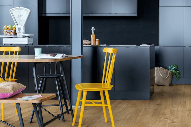 Od wybuchu pandemii kuchnia stała się najważniejszym miejscem w domu. Jako że spędzamy w niej coraz więcej czasu, przejęła ona poniekąd rolę salonu. Quick-Step odpowiada na ten nowy trend ofertą niezwykle wytrzymałych i odpornych na działanie wody paneli Alpha Vinyl.