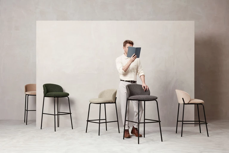 Stołek barowy posiada tą samą otulającą formę, co bestsellerowe krzesło. Idealnie sprawdzi się przy barze lub wyspie kuchennej.