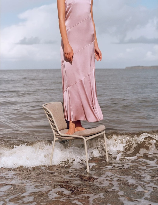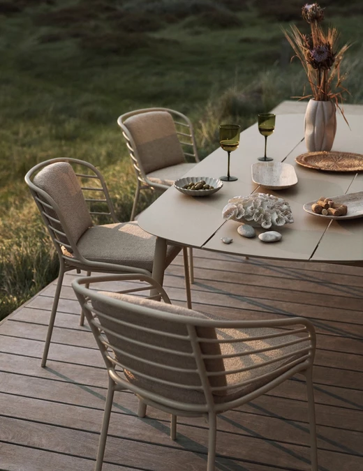 "Jednym z naszych głównych celów było zaprojektowanie zestawu ogrodowego, który jest wszechstronny i zapewnia wygodę nawet przez wiele godzin" – mówi Georgsen. "Nie ma tutaj ostrych narożników – wszystko jest zaokrąglone, zachęcające i gładkie". Został również przemyślany pod kątem niezwykłej trwałości. "To ponadczasowy projekt, który będzie Ci towarzyszyć przez lata."