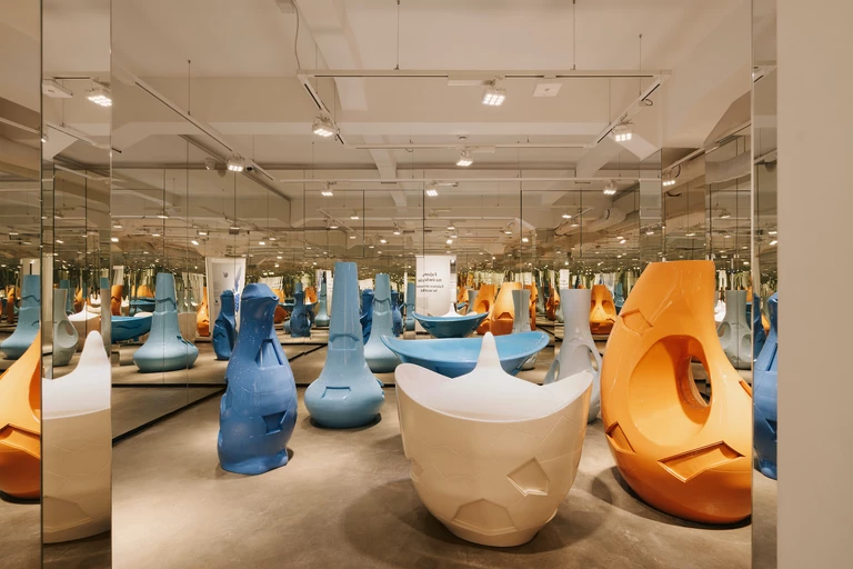 Kolorystyka aranżacji wystawy stałej jest zawężona do palety flagowych dzieł. Kobalt i dopełniające go ugry obecne są zarówno w wystawie, jak i zaprojektowanej identyfikacji wizualnej. Są też motywem przewodnim muralu widocznego na fasadzie, którego autorem jest wybitny projektant graficzny Bartek Bojarczuk. Zaprojektował również dedykowany obiektowi neon.