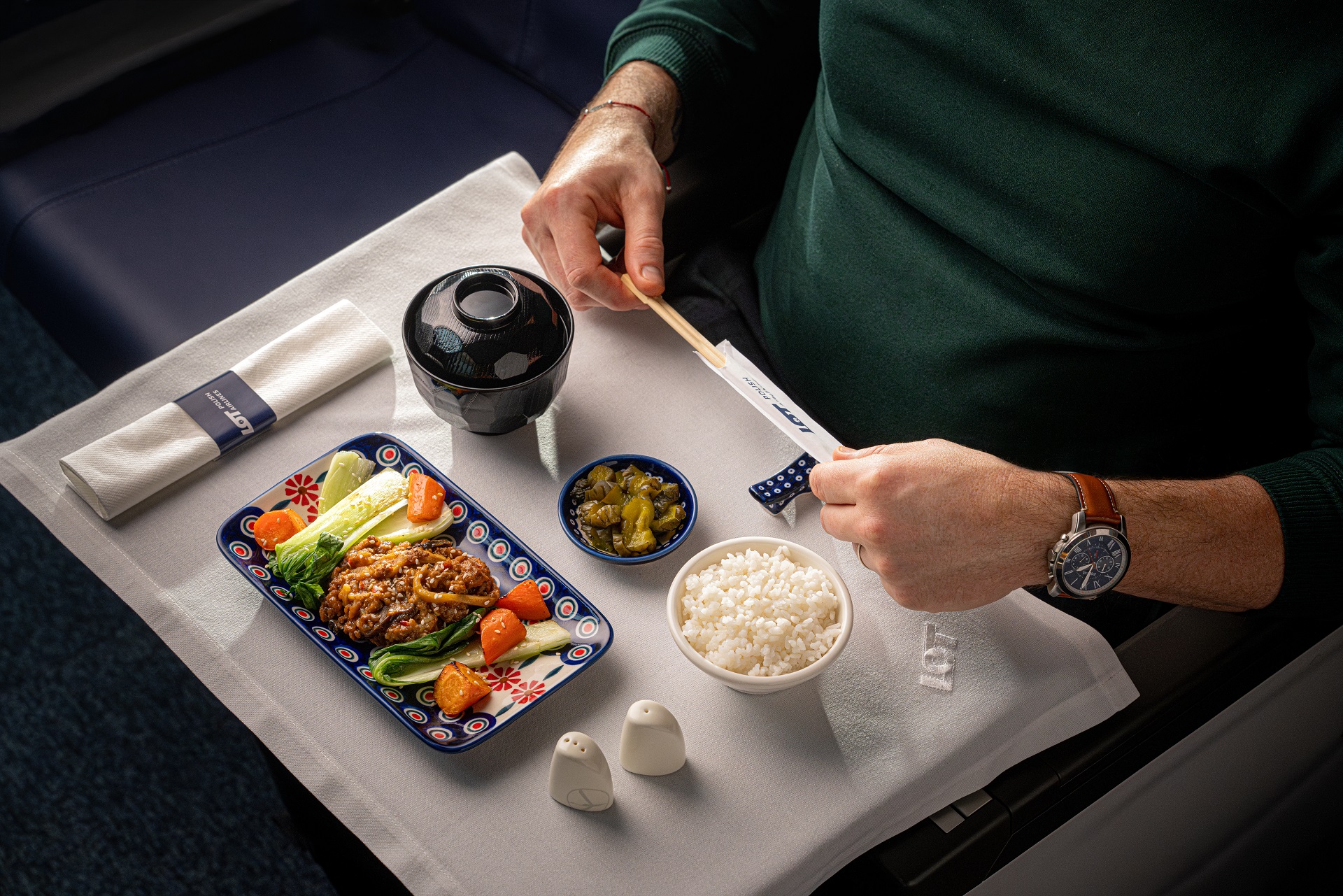 Polskie Linie Lotnicze LOT wprowadziły na trasie Warszawa–Narita–Warszawa nową oprawę serwisu pokładowego, opartą na ceramice przygotowanej przez Manufakturę w Bolesławcu specjalnie dla narodowego przewoźnika. Pełna zastawa towarzyszy pasażerom LOT Business Class, a wybrane elementy kolekcji pojawiły się także w LOT Premium Economy. Tym samym ceramika bolesławiecka, od lat obecna w polskich domach, zyskała nowe miejsce i nowy kontekst – stała się częścią międzykontynentalnej podróży.