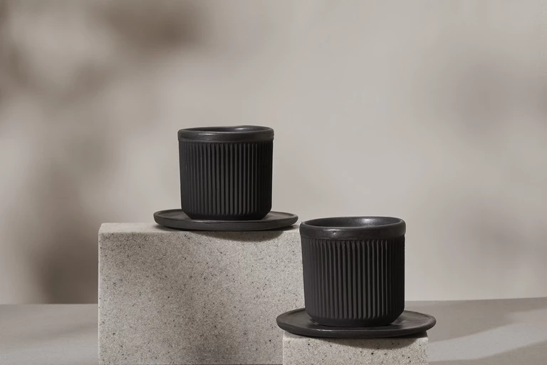 Dla osiedla Botanica Jelitkowo, w którym odnajdujemy wiele inspiracji kulturą Japonii, Jakub Sojka z pracowni FÓBE stworzył zestaw naczyń do zielonej herbaty.