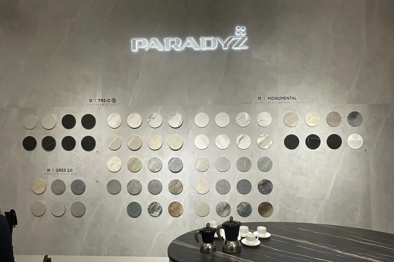 Ceramika Paradyż jako polska firma z największą ofertą produktową, zaprezentowała barwione w masie spieki wielkoformatowe TRI-D, modne kolekcje slabów cieszącego się ogromną popularnością setu Monumental oraz wytrzymałe i uniwersalne płyty tarasowe 2.0. Podczas targów zostały zaprezentowane odważne projekty, w tym świeże spojrzenie na klinkier dzięki kolekcji Sundown by Maja Ganszyniec.