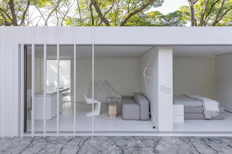 Cosentino było także w centrum uwagi podczas CASACOR São Paulo, jednej z największych wystaw architektury, krajobrazu i designu Ameryki Południowej. Na potrzeby tego wydarzenia architekt Marilia Pellegrini stworzyła przestrzeń obracającą się wokół koncepcji zrównoważonego rozwoju i recyklingu. Powierzchnia ultrakompaktowa Dekton i konglomerat Silestone zostały wykorzystane w projekcie, którego celem była zmiana kontenerów o metalowej konstrukcji w awangardową, ale przede wszystkim przytulną przestrzeń. Na pokrycie fasady, dachu kontenera i podłóg wewnętrznych projektantka wybrała ultrakompaktową powierzchnię Dekton Zenith w kolorze śnieżnobiałej bieli, która jeszcze bardziej podkreśla kompozycję elementów domu. Ponadto na elewacji wykorzystano również Dekton Ariane.