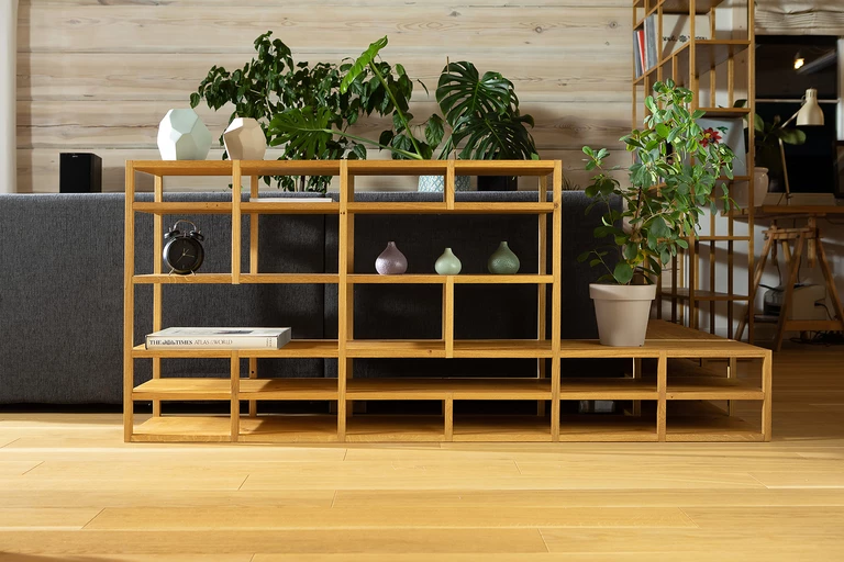 Co ważne, regały są ażurowe, więc nie blokują dostępu do światła dziennego. Dają też wiele możliwości dostosowania ich do swoich potrzeb – można dobrać wielkość regału, a także połączyć go z szufladami.