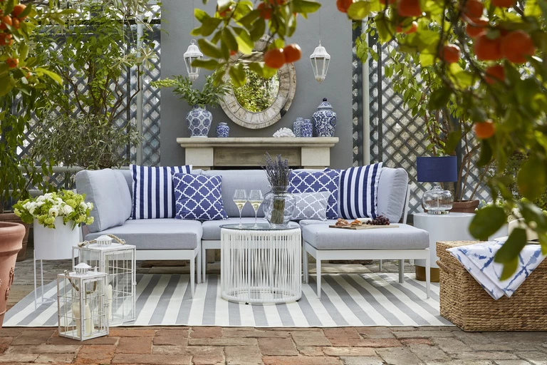 Outdoor by Westwing Collection to przede wszystkim przytulne meble wypoczynkowe i kolorowe tkaniny. Kolekcja łączy w sobie nowoczesność z szykiem południowych willi i błogością wakacyjnych dni.