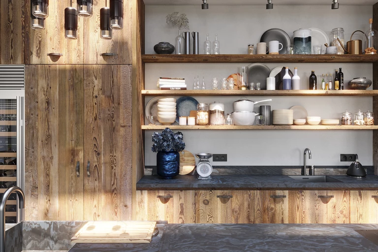 Mając na uwadze te kwestie, przedstawiamy zabudowy kuchenne marki Regalia, które wykonywane są w 100% z wiekowego drewna – dotyczy to również cokołów, korpusów czy wnętrz szuflad i szafek.