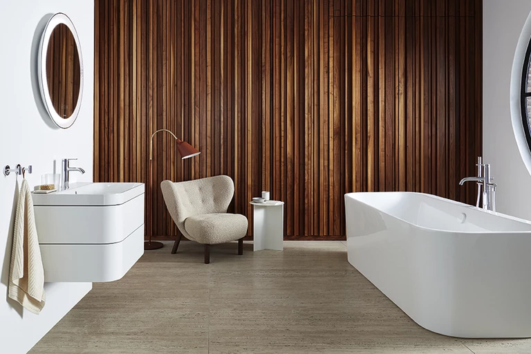 Nowe warianty obszaru mycia można idealnie łączyć ze wszystkimi elementami z serii Happy D.2 i Happy D.2 Plus, zapewniając spójny design wszystkich elementów w łazience. Happy D.2 Plus oferuje spójną koncepcję kolorystyczną z toaletami i bidetami w kolorze antracytowym, a także wanny z bezszwowymi obudowami w grafitowym supermacie - idealnie harmonizując z czarną metalową konsolą i ciemnymi powierzchniami mebli.