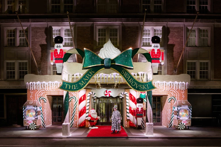 Fasada nowojorskiego hotelu The Mark została ozdobiona niezwykłą dekoracją z kryształów Swarovskiego, inspirowaną świątecznym pierniczkiem.