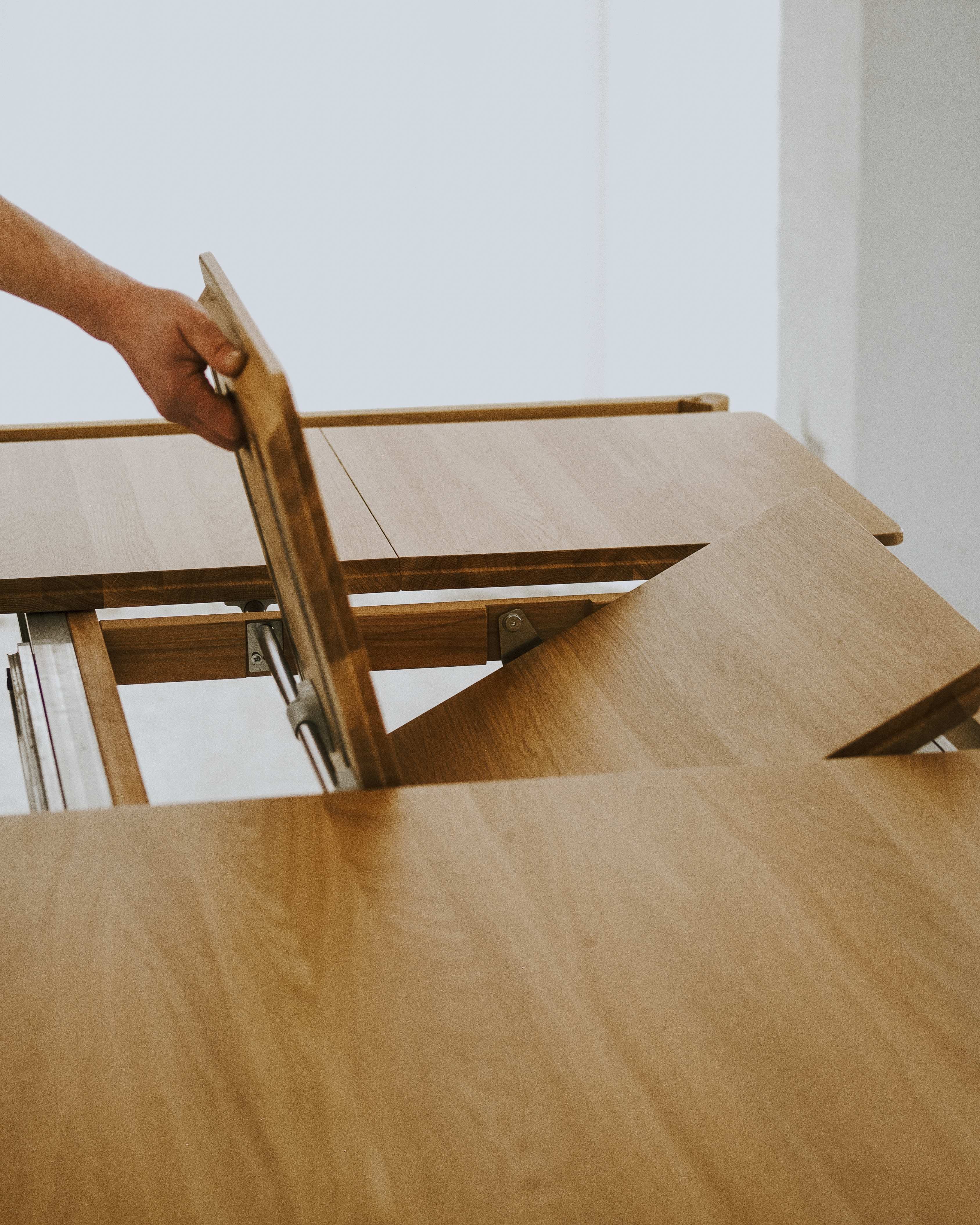 Opowieść o stołach rozkładanych to często historia niedogodności. Widoczne łączenie na środku blatu, które zaburza rysunek drewna i zbiera okruchy. Dodatkowe płyty, które trzeba przechowywać w szafie. Ciężkie mechanizmy rysujące podłogę i stabilność, która znika wraz z dodaniem kolejnego nakrycia.
