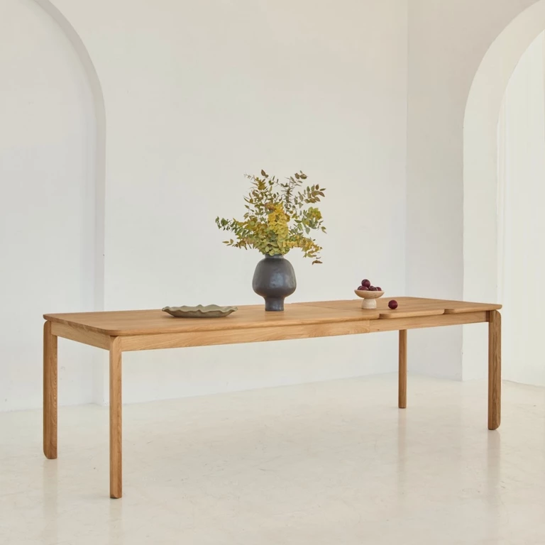 Ta płynność została przemyślana w każdym detalu. Aby chronić cenne podłogi, nogi stołu wyposażono w dyskretne, niewidoczne kółka, dzięki czemu stół rozsuwa się bezszelestnie, bez ryzyka i bez użycia siły.