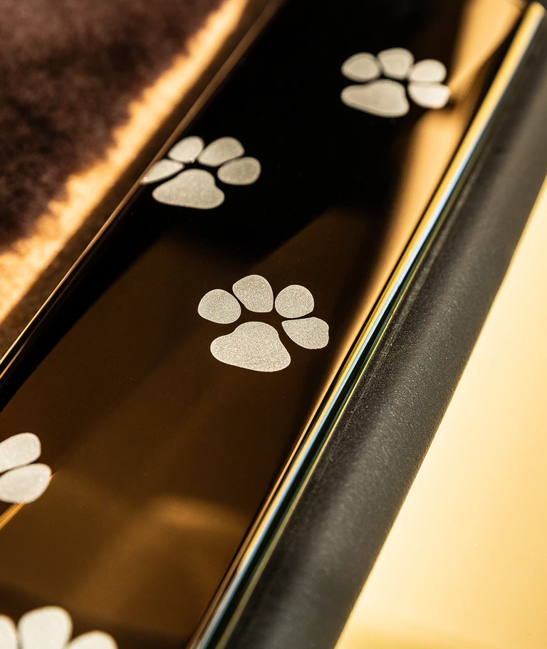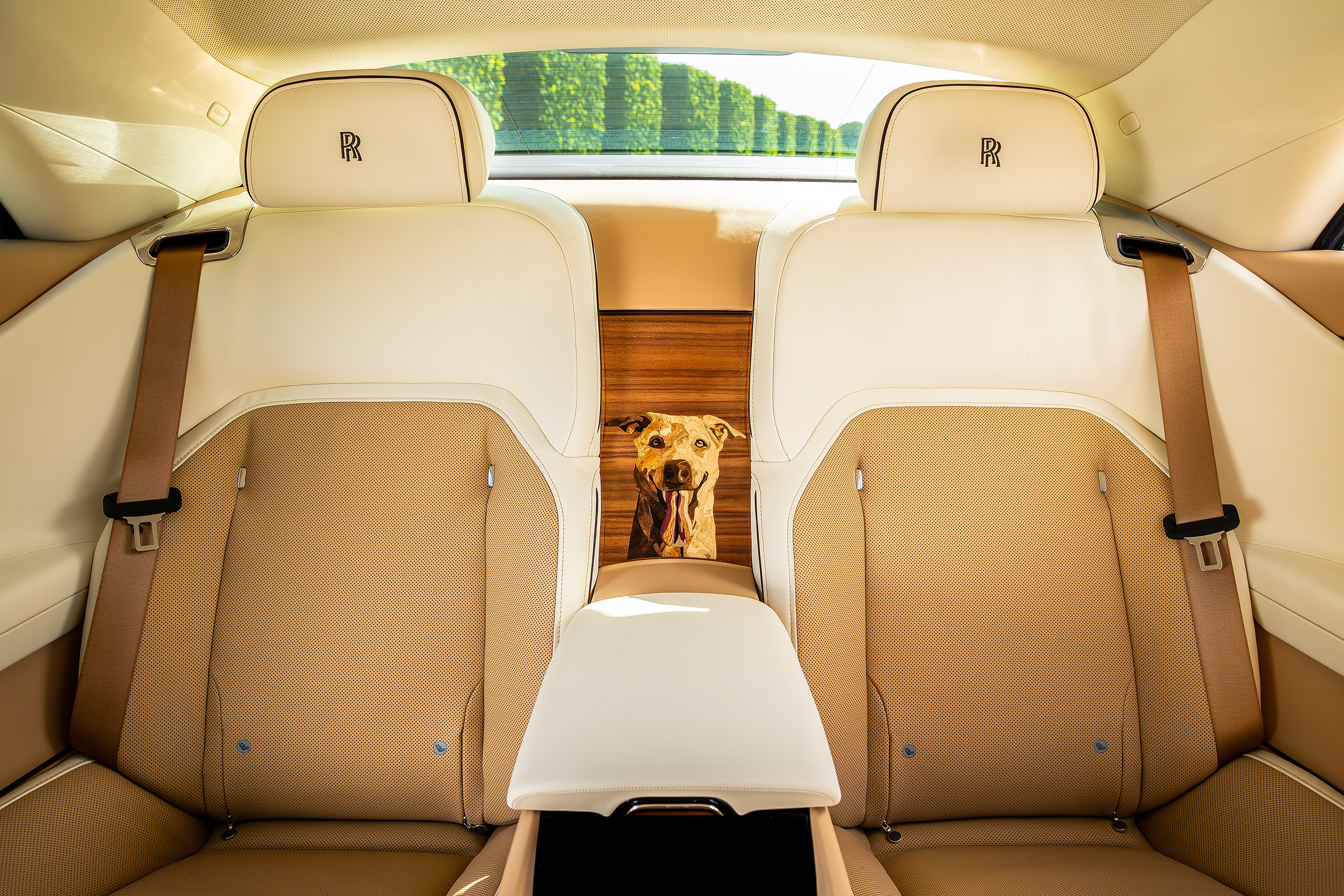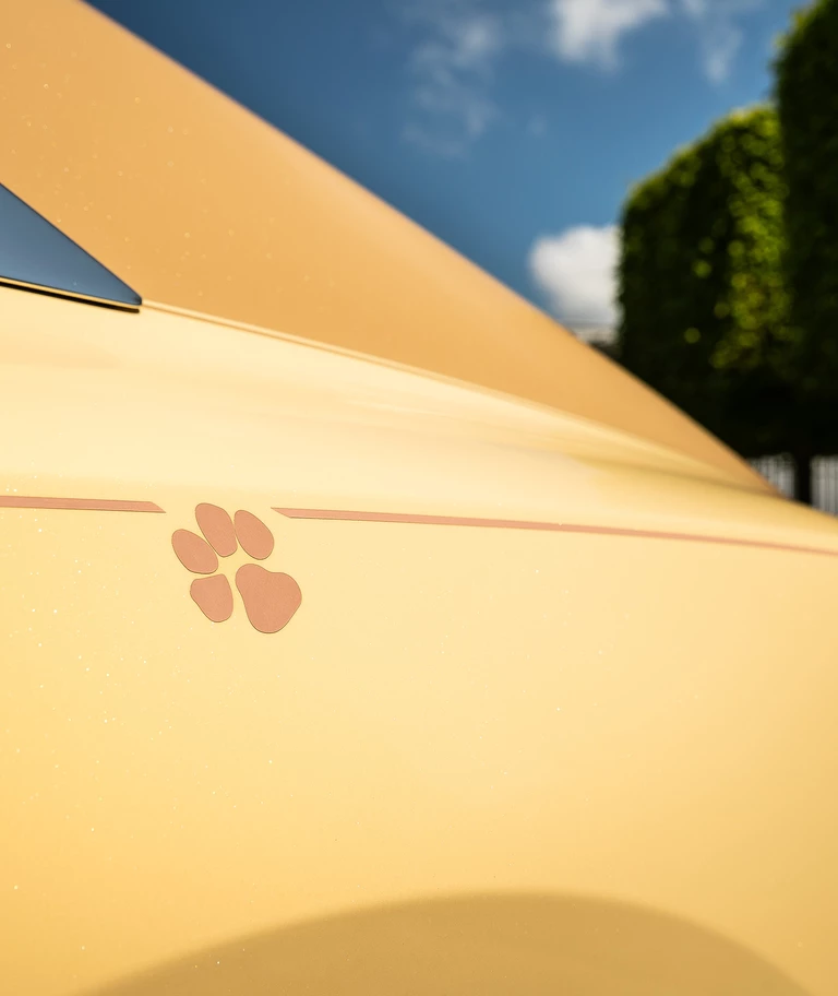 Motyw łapy Baileya powraca dyskretnie w kilku innych miejscach. Pojawia się jako mniejsza intarsja na panelu po stronie pasażera oraz jako grawerunek na progach drzwi, wykonanych z różowego złota, ukazując się dopiero po ich otwarciu. Wnętrze wykończono skórami w odcieniach Moccasin i Crème Light z akcentami Dark Spice i Casden Tan, co stanowi kolejne nawiązanie do umaszczenia czworonożnego przyjaciela.