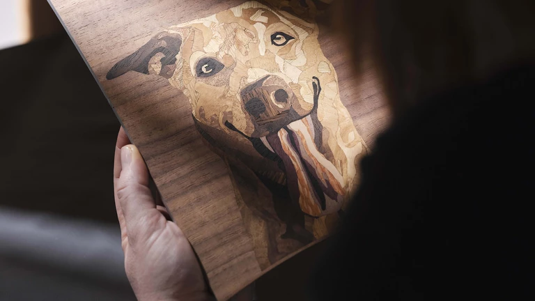 Prawdziwe serce projektu kryje się jednak we wnętrzu. Centralnym punktem kabiny, umieszczonym na panelu między tylnymi siedzeniami, jest niezwykle realistyczny portret Baileya, wykonany w technice intarsji. Ta skomplikowana kompozycja, składająca się z ponad 180 kawałków forniru, wymagała ponad czterech miesięcy pracy. Aby oddać ciepło i fakturę sierści psa, rzemieślnik sięgnął po bogate spektrum naturalnych oklein, eksperymentując z kierunkiem słojów, tonacją i teksturą. Każdy arkusz wybrano ze względu na jego naturalny odcień, bez użycia bejc czy sztucznych barwników. Sam język psa wykonano z czterech gatunków drewna – Purple Heart, Tulipwood, Louro Faia i Pear – których Rolls−Royce nigdy wcześniej nie stosował w swoich projektach. Łącznie do stworzenia portretu użyto dziewięciu różnych fornirów w 22 naturalnych odcieniach.