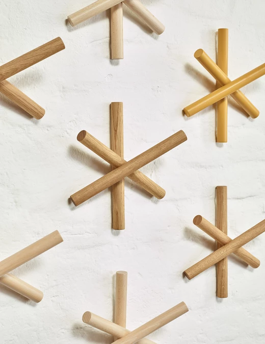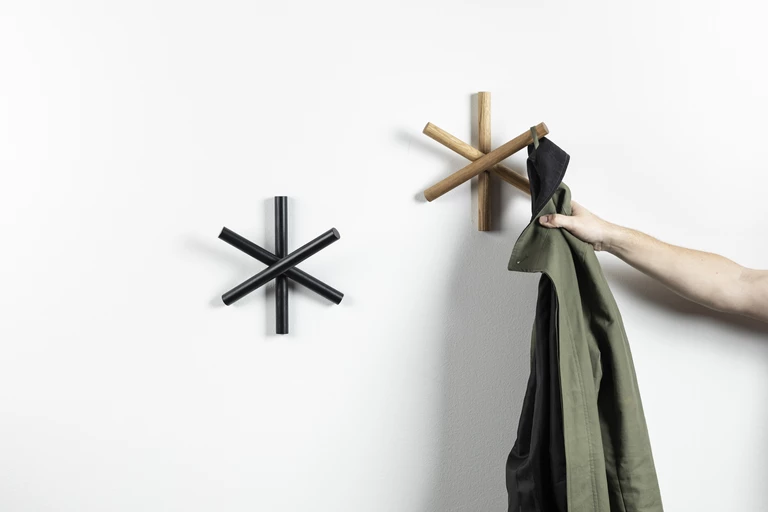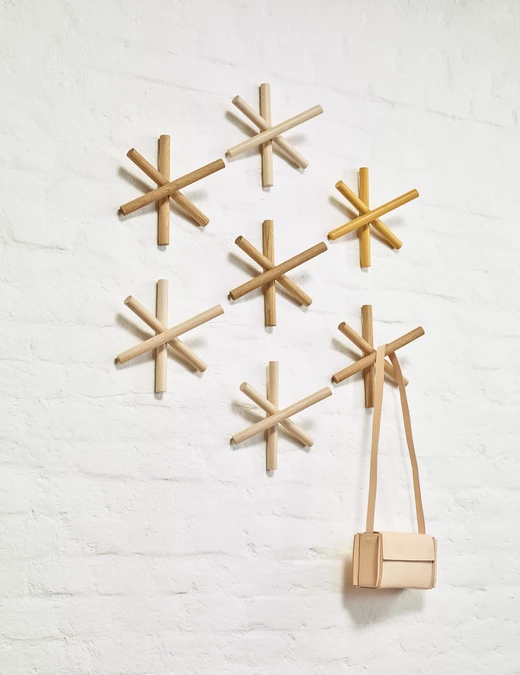 Prezentujemy nowe spojrzenie na ideę zrównoważonej produkcji: niemieckie studio projektowe Büro Famos wykorzystało pozostałe w toku produkcji krzeseł elementy drewniane i przekształciło je w minimalistyczny wieszak w kształcie gwiazdy.