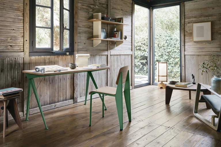 Wytworne, smukłe nogi biurka Compas Direction (VITRA) autorstwa Jeana Prouvé układają się niczym ramiona cyrkla – „le compas” w języku francuskim.