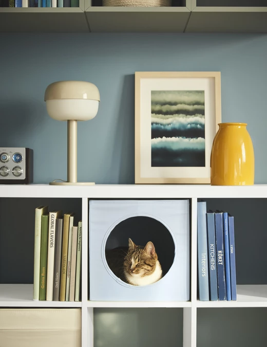 Artykuły UTSÅDD zostały zaprojektowane tak, aby pasowały do naturalnych zachowań i potrzeb zwierzaków. Koty uwielbiają chować się we wszelkich ciasnych przestrzeniach i obserwować stamtąd pozostałych domowników. Czy może być zatem coś lepszego niż mały namiot? Wykonany z szarego filcu z drewnianą konstrukcją sprawia, że dobrze się prezentuje, ale przede wszystkim jest praktyczny w użytkowaniu. Namiot jest łatwy do przenoszenia i umieszczenia tam, gdzie zwierzak lubi przebywać. Dla większego komfortu, można dodać poduszkę UTSÅDD w błękitnym kolorze. Jej tkanina jest odporna na zadrapania pazurami, a pokrowiec można zdjąć i wyprać.