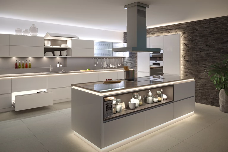 Inteligentne oświetlenie możemy dopasować nie tylko do naszych potrzeb, ale także do aranżacji wnętrza – to właśnie zapewnia nam system Multi White. Pozwoli on zintegrować strefę kuchenną z salonem, dostosowując temperaturę barwową światła do danej pory dnia lub nocy. Wpływ barwy światła na nasz nastrój i samopoczucie, a także na poziom melatoniny (tzw. hormon snu) w organizmie jest udowodniony naukowo. Rozbudza nas chłodne światło, a „usypia” ciepłe. Dzięki zdalnemu sterowaniu rano pracujemy i przygotowujemy posiłki przy białym chłodnym i pobudzającym nas świetle, po południu jemy posiłek przy nieco cieplejszej barwie, a wieczorem relaksujemy się i odpoczywamy przy białej ciepłej barwie.