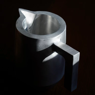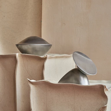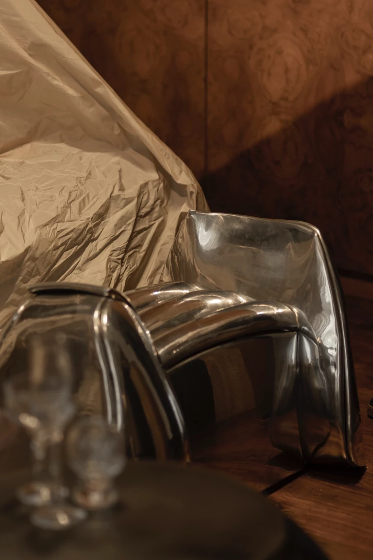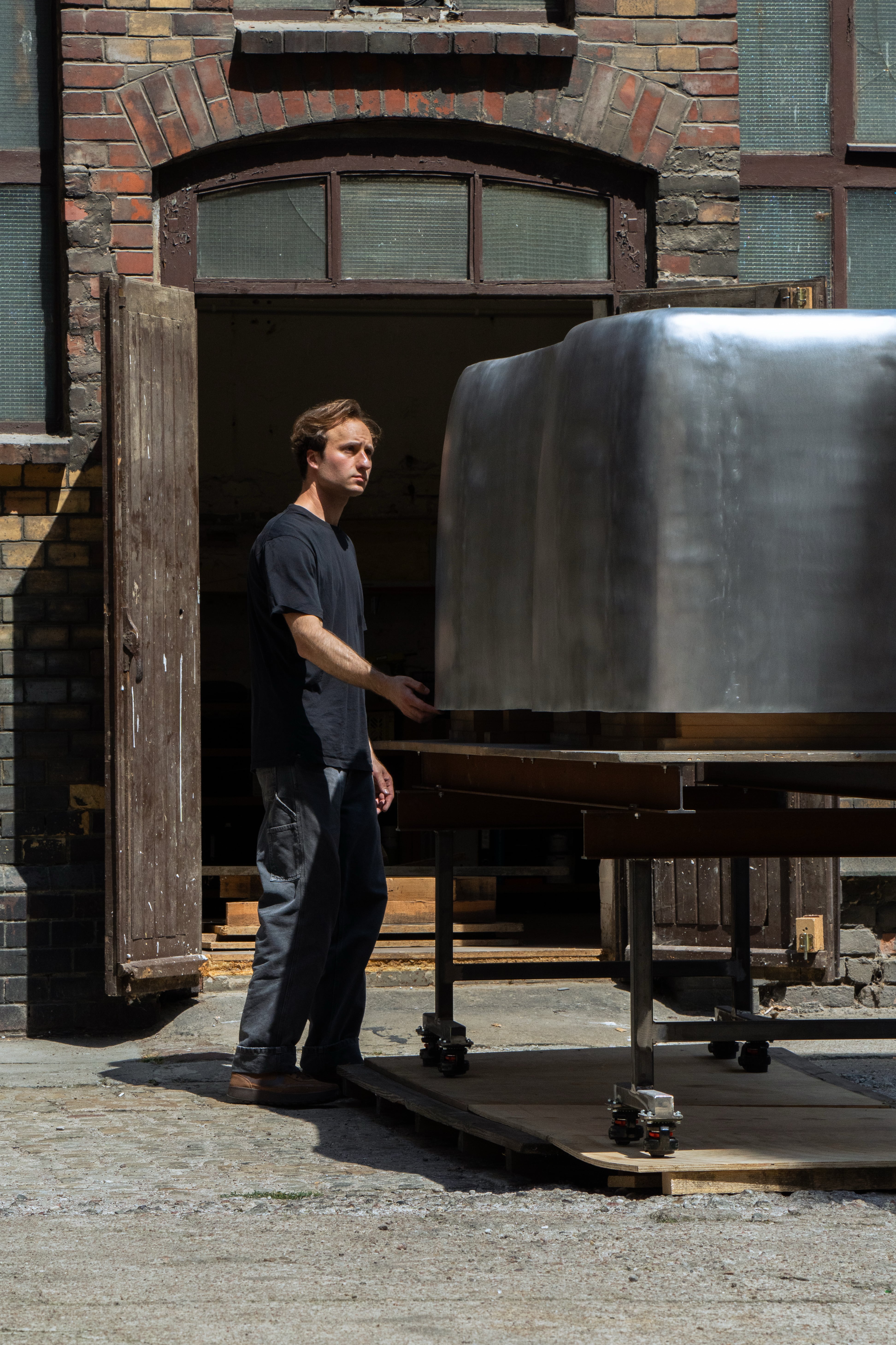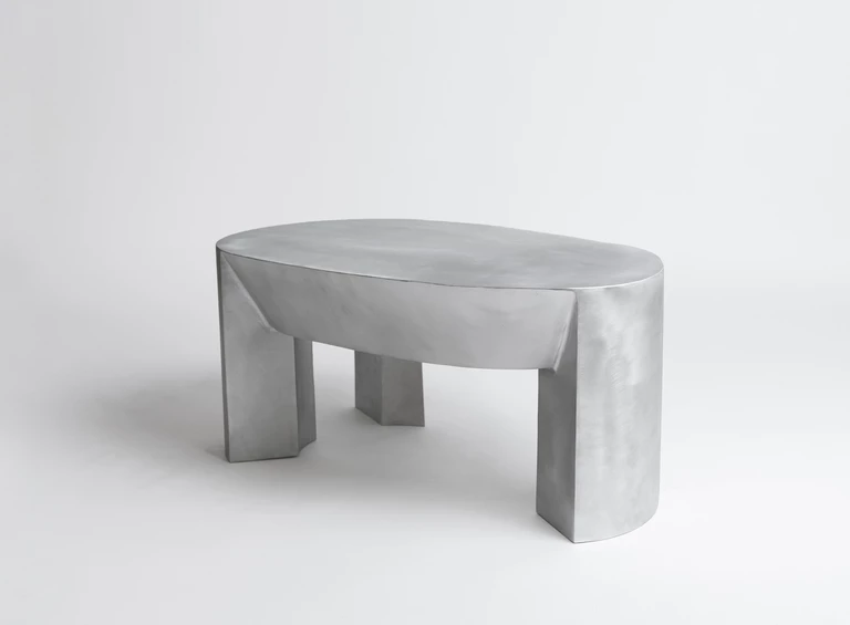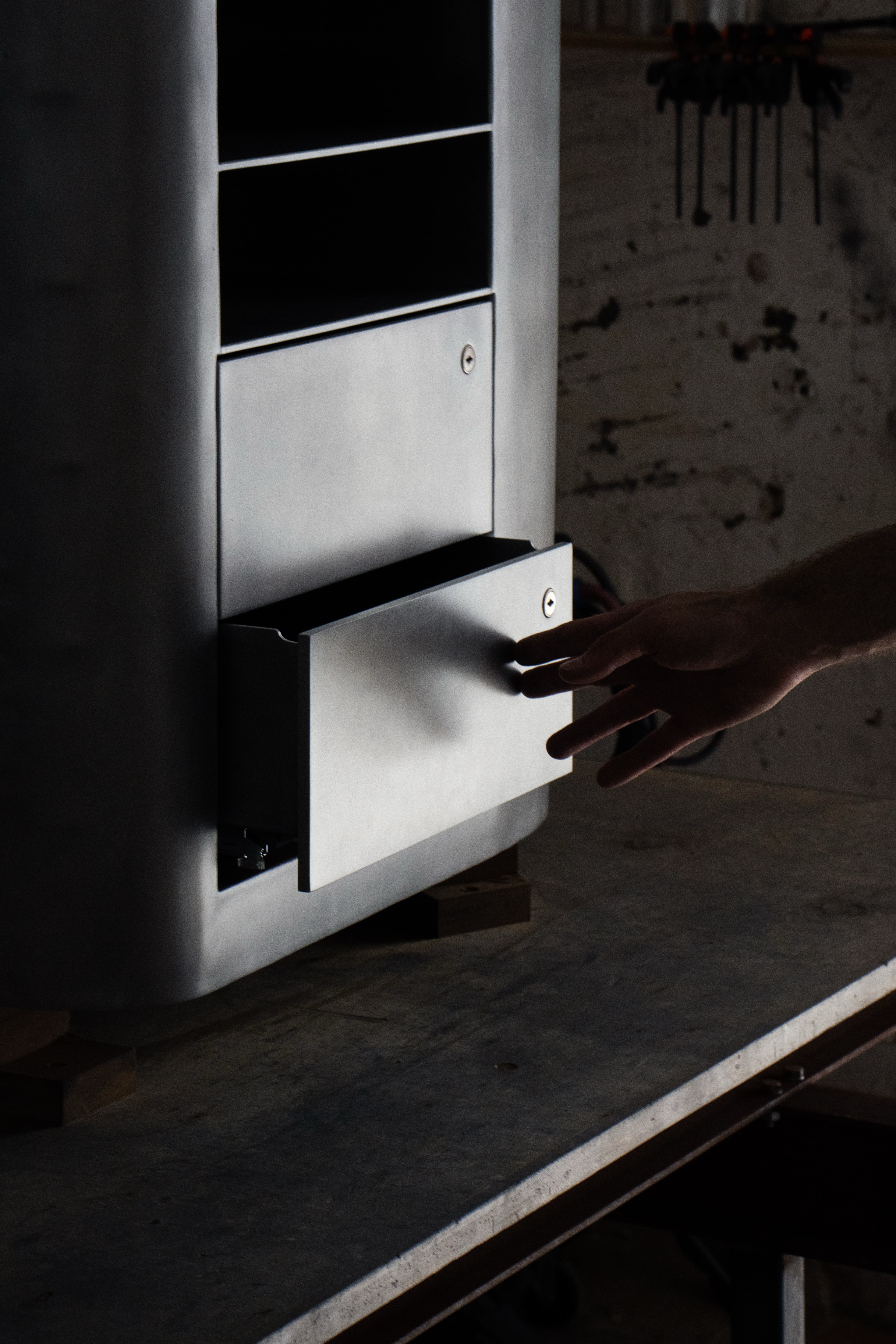 Wybór aluminium jako głównego medium nie jest u Jana kwestią przypadku, lecz fascynacji „demokratycznością” i szczerością tego metalu. Projektant najchętniej sięga po stop 1050 – aluminium o wysokiej czystości, które charakteryzuje się dużą miękkością, pozwalając na precyzyjne, ręczne formowanie.
