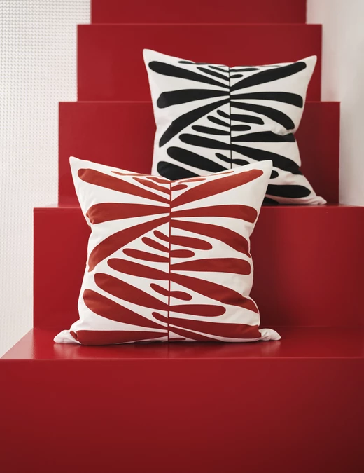 Seria tekstyliów MAJSMOTT pełna jest skandynawskiego uroku i śmiałego, a jednocześnie prostego wzornictwa inspirowanego naturą. W tej kolekcji są m.in. poszewki na poduszki w czerwonym i czarnym wykończeniu i miodowo-białe zasłony.