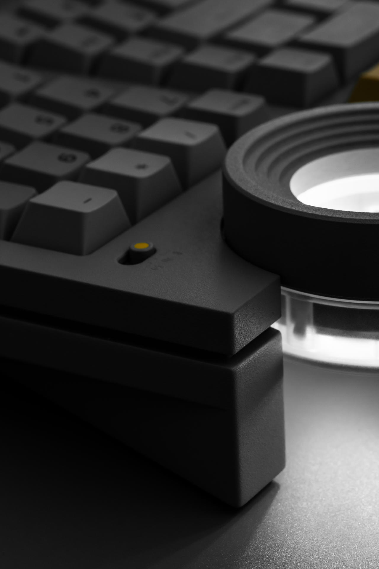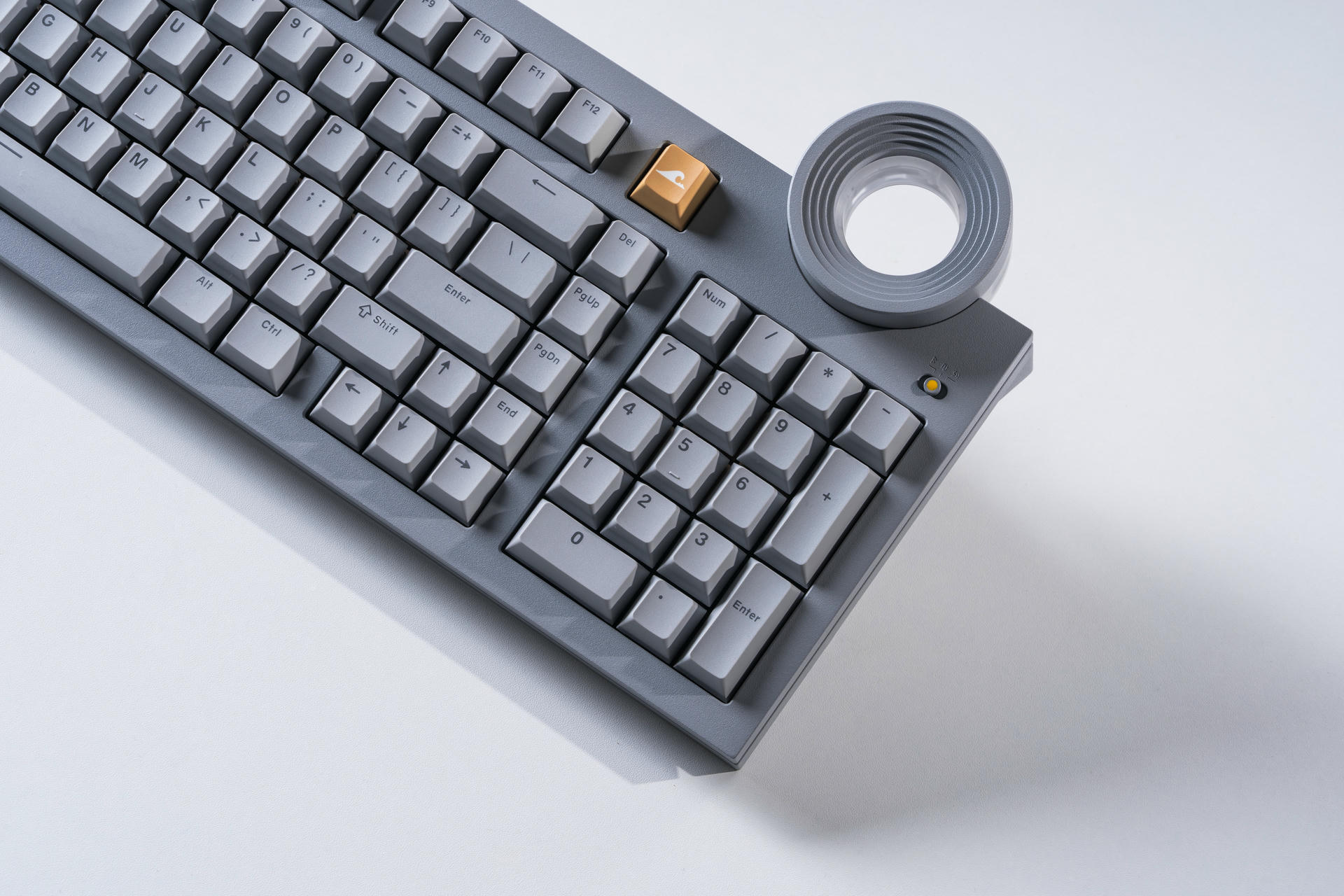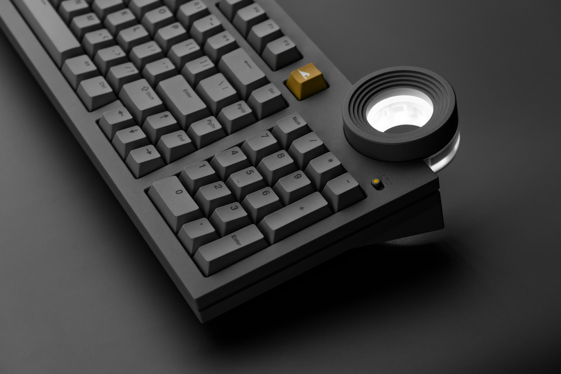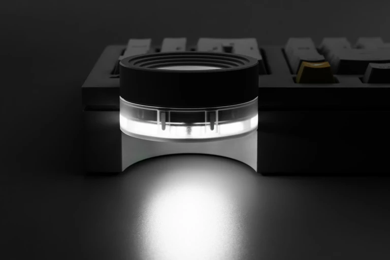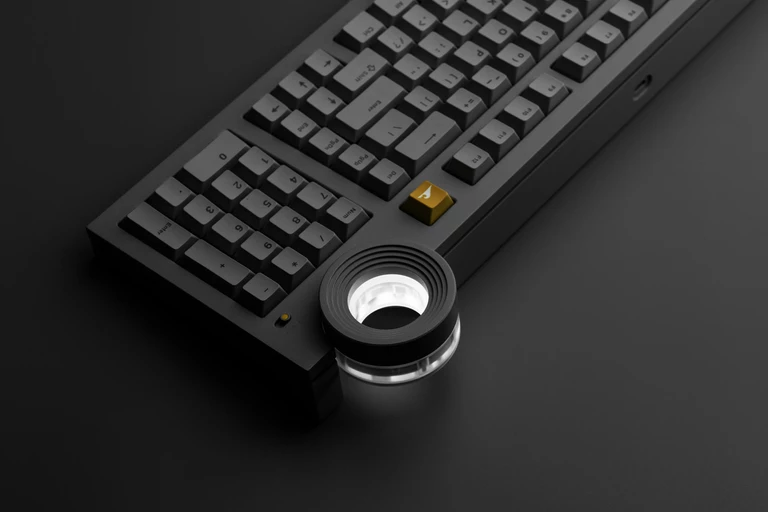 W górnej części klawiatury umieszczono charakterystyczne pokrętło Star Ring, które pełni zarówno funkcję użytkową, jak i estetyczną. W ustawieniach domyślnych służy do regulacji głośności, jednak jego działanie można dowolnie konfigurować: od przewijania treści, przez zmianę trybów pracy, po obsługę skrótów. Subtelne podświetlenie jest kolejnym nawiązaniem do architektury Tadao Ando.