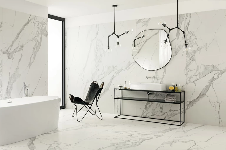 - Marmur zachwyca ponadczasową estetyką. Kiedyś wykorzystywano go do budowy i wykończenia domów, świątyń czy pałaców, dziś służy głównie do ozdabiania wnętrz - nie tylko ścian i podłóg, ale również blatów, parapetów czy schodów. Charakterystyczny wzór marmuru, zwłaszcza jego białej odmiany, jest sposobem na uszlachetnienie wnętrza i dodania mu prestiżu. Z tego względu często można go spotkać w najlepszych hotelach świata czy reprezentacyjnych gabinetach. Jednak wrażenie luksusu nie musi być równoznaczne z wielkimi przestrzeniami. Poczucie wyjątkowości możemy przenieść także do naszych domów i mieszkań, nawet tych o niewielkiej kubaturze. Płytki ceramiczne o rysunku marmuru to gwarancja uniwersalnego stylu i jakości na długie lata, szczególnie że odznaczają się one większą trwałością i funkcjonalnością w porównaniu do naturalnego marmuru.