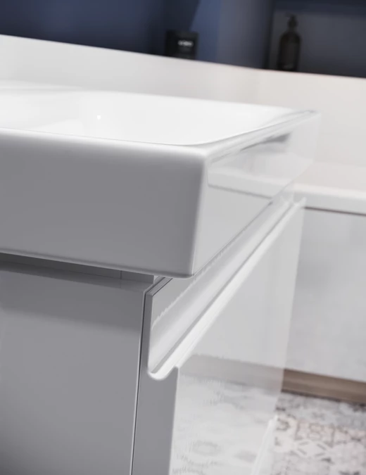 Proste, minimalistyczne meble z kolekcji MODUO doskonale sprawdzą się w każdej łazience. Dostępne w dwóch uniwersalnych wariantach kolorystycznych – błyszczącym białym oraz błyszczącym szarym, będą pasowały zarówno do wnętrz o nowoczesnym, nawet loftowym charakterze, jak i do klasycznych, eleganckich aranżacji. Ze stylem skandynawskim, z kolei, współgrać będą dostępne w kolekcji elementy w kolorze jasnego dębu. Dodadzą one pomieszczeniu nieco przytulności i pomogą zamienić naszą łazienkę w domowe SPA. Proste linie, frezowane uchwyty oraz gładkie powierzchnie szafek i blatów sprawiają, że wszystkie elementy kolekcji MODUO łatwo utrzymać w czystości, a dzięki zastosowaniu technologii Aquasafe na blatach oraz otwartych modułach w kolorze drewna, meble są bardziej odporne na wilgoć i pleśń. System soft-close zapewni nam komfort cichego zamykania mebli, tak istotny przy porannej toalecie, kiedy cześć z domowników jeszcze śpi. To wszystko sprawia, że z kolekcją MODUO zaprojektujemy modną i funkcjonalną łazienkę na lata.