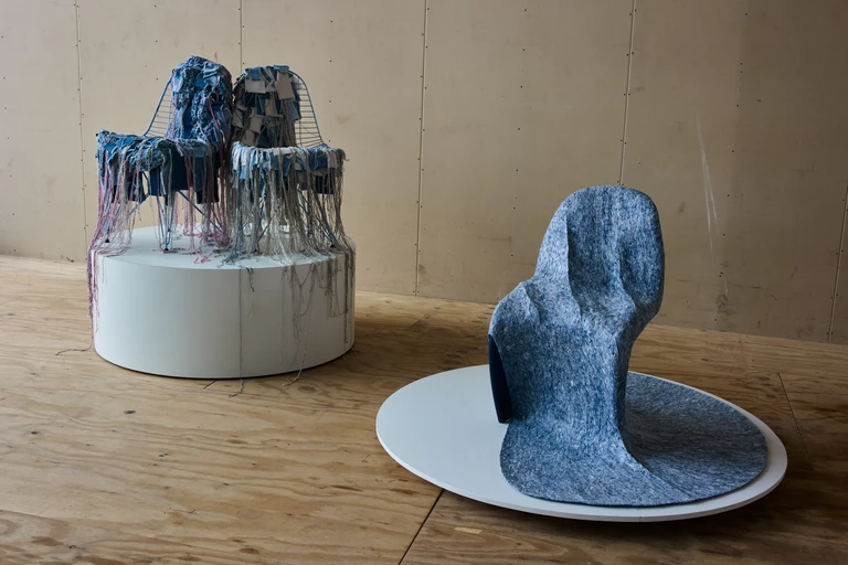 Łotewska projektantka Sarmite Polakova otoczyła krzesło „Panton” projektu Vernera Pantona innowacyjną biowłókniną, wykonaną z zużytego denimu. Ten wytrzymały, a jednocześnie lekki materiał, o wyglądzie przypominającym zamsz, został starannie ukształtowany w formę przywodząca na myśl suknię z trenem.