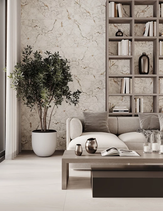 Elegancja włoskiego marmuru zamknięta w ponadczasowym dizajnie. Minimalna ilość fugi pozwala uzyskać efekt jednolitej powierzchni - idealny wybór do kompozycji glamour oraz klasycznych.