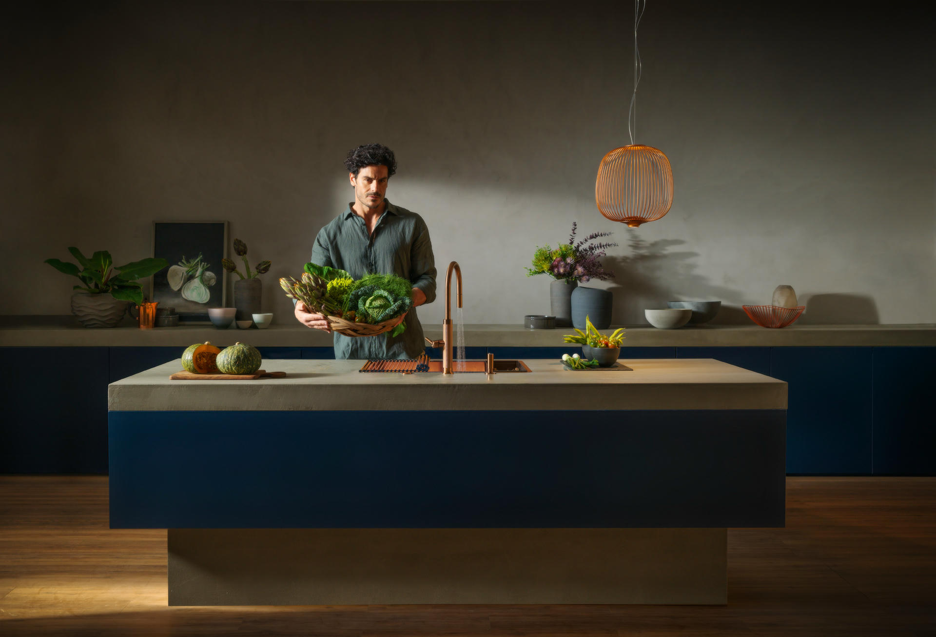 fot. Iwona Dziuk, w tle obrazy Agata Hećman, na wyspie ceramika Aneta Kocia, set design Monika Goszcz-Kłos/Goszcz Design