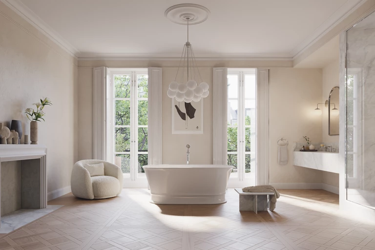 Centralnym punktem w łazience oraz ważnym elementem stylu french modern jest wanna wolnostojąca. Wanna z kolekcji OMNIRES CLASSICA M+ wyróżnia się nowoczesnym designem nawiązującym do najpiękniejszych klasycznych wzorców. Charakterystyczne wyprofilowanie i ozdobne frezy nadają jej romantyczny charakter, który idealnie wpisuje się we wnętrze we francuskim stylu.