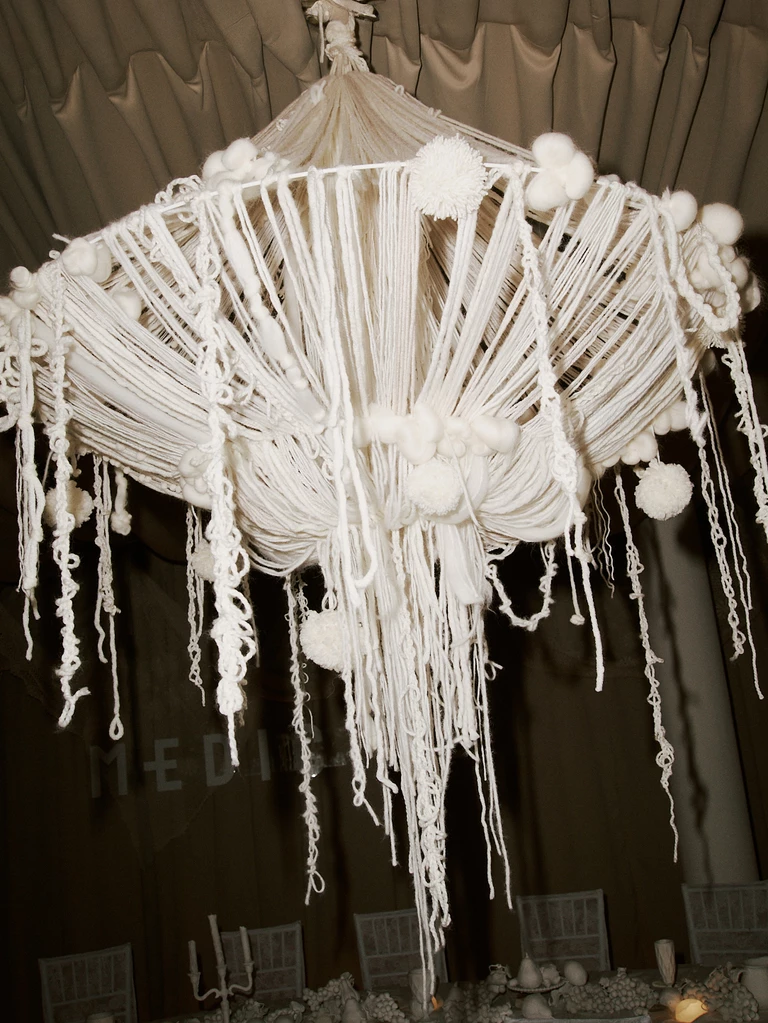 Każdy detal był wynikiem pracy rzemieślników: tkane koronki, żakardowe obrusy, kamienne elementy. Scenografia nie stanowiła tła, lecz ciało wydarzenia – organiczną strukturę zbudowaną z tkaniny i światła.