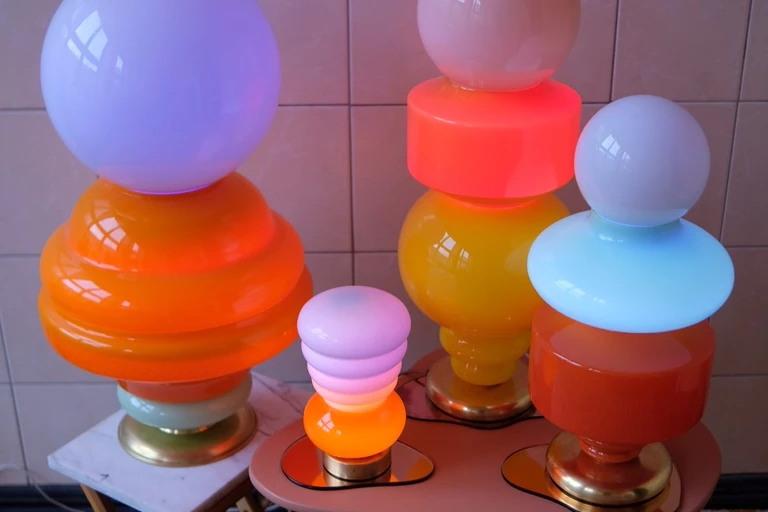 Michał Korchowiec tworzy swoje rzeźby świetlne z precyzyjnie dobranych, szlachetnych kloszy vintage, łącząc w swoich projektach zdobycze z różnych czasów – od lat 20-tych do 80-tych XX wieku. Artysta stworzył dwie kolekcje unikatowych dzieł – jedna powstała dla KOPI HOME, druga dla galerii Listval_ w Reykiaviku.