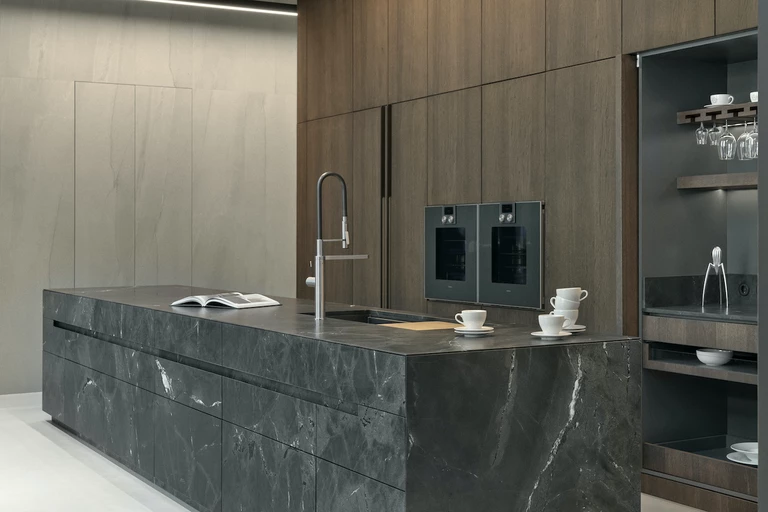 W nowym showroomie nie ma wielu gotowych podpowiedzi i wystylizowanych zestawów produktów. Przestrzeń ma ułatwiać wybór materiałów, urządzeń i rozwiązań w oparciu o wyselekcjonowane próbki płytek, tapet, winyli LVT, drewna oraz urządzeń wyeksponowanych w przejrzysty i harmonijny sposób. Znajdziemy tu produkty i kolekcje odpowiadające na estetyczne upodobania klienta, który poszukuje dobrej jakości i dizajnu najwyższej próby. Na miejscu obejrzymy kolekcje armatury i ceramiki łazienkowej znakomitych włoskich marek. Znalazła się tu również jedna z najefektowniejszych kuchni ZAJC – z wyspą w całości wykończoną naturalnym kamieniem, modna garderoba-witryna oraz panele ścienne wykończone szlachetnymi fornirami.
